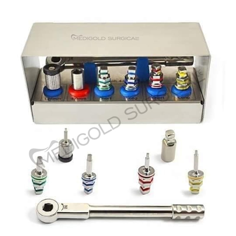 Bone Compression Implant Tools Kit 1x Ratchet Wrench 4.0mm Square Head 1x Drill 1 x Extender 1x Motor Mount Adapter 1x Sinus Elevation Screw (3.5mm) 3x Bone Compression Screws Please see picture for sizes Made by high quality stainless steel