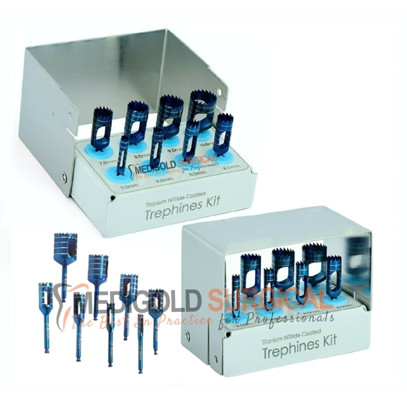 Trephine Drills Kit dental implant 8Pcs Blue color Titanium Coated